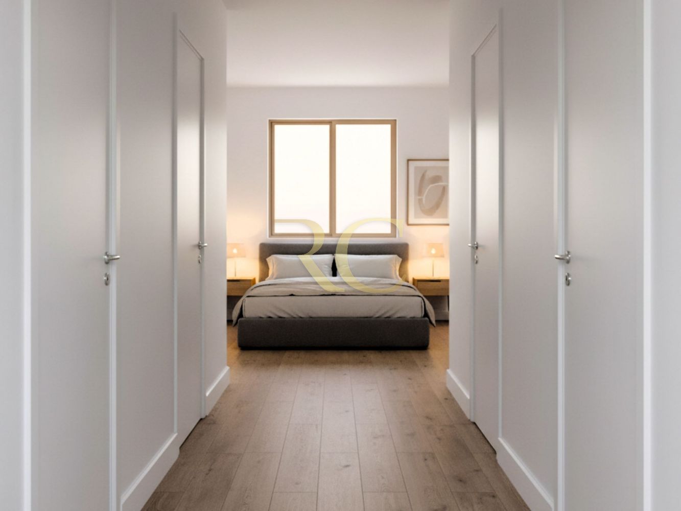 • Portas interiores lacadas a branco com dobradiças invisíveis