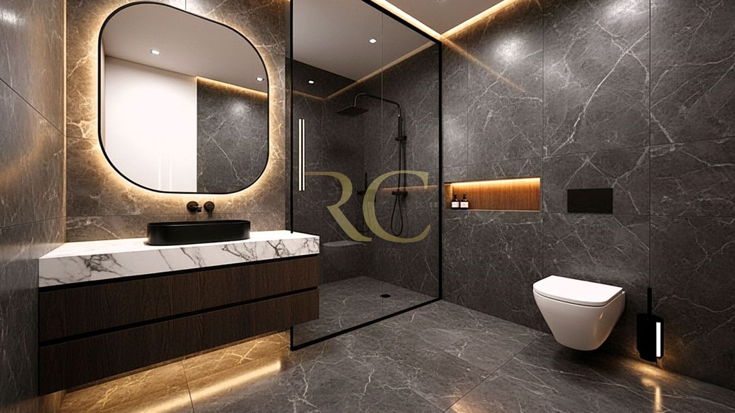 • WC com base de duche, louças suspensas e ventilação mecânica